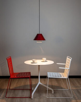 O la-la works beautifully as a single pendant above a dining or coffee table, but also in multiple arrangements — above a bar, in restaurants or hotel interiors.